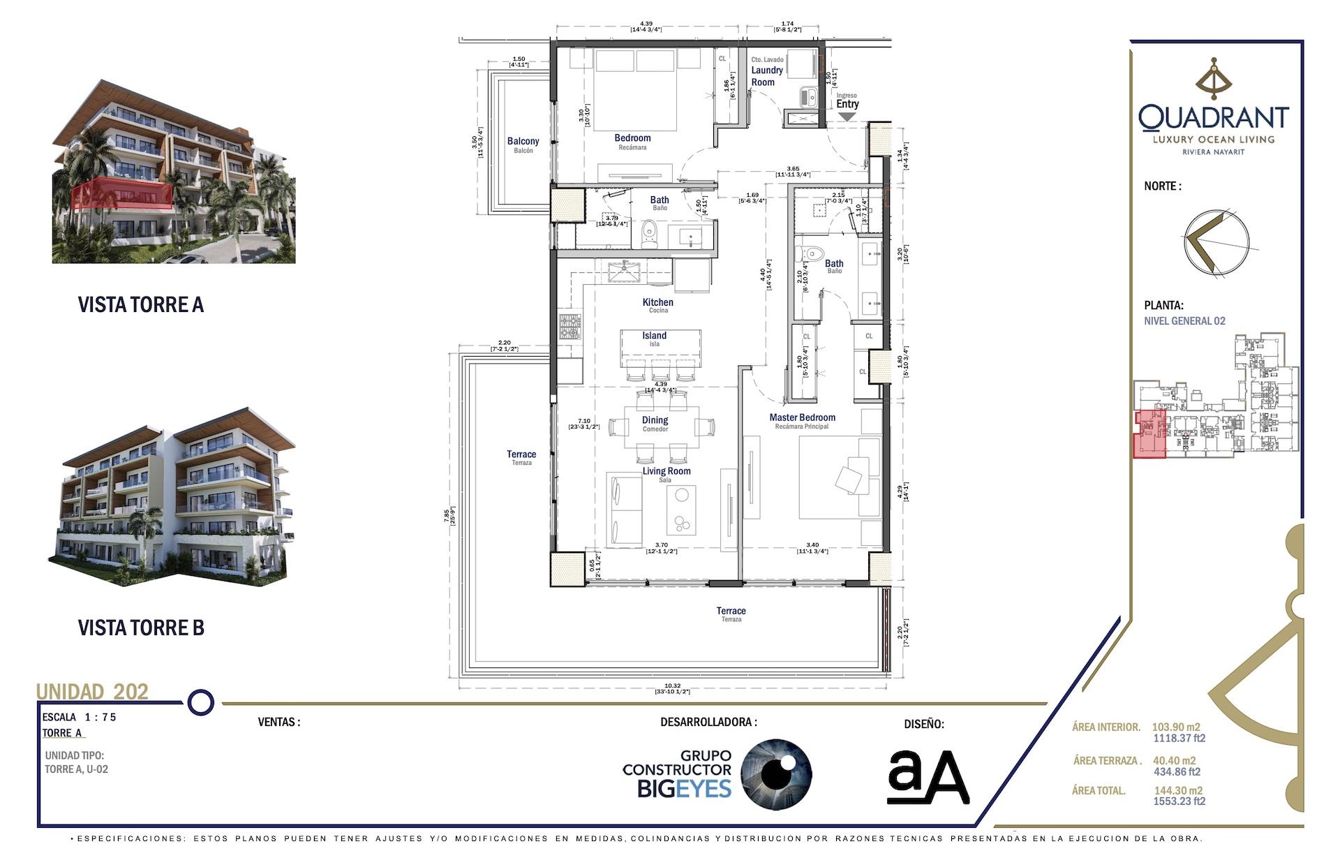 Increíble condominio que fusiona lujo y confort. Con un diseño amplio y contemporáneo, esta propiedad ofrece 2 recámaras, 2 baños, y un total de 132.07 m². Disfruta de asombrosas áreas comunes con espléndidos ambientes, todo en una ubicación exclusiva en Bucerías, Nayarit. Experimenta un estilo de vida costero de primer nivel en Quadrant Luxury Ocean Living.